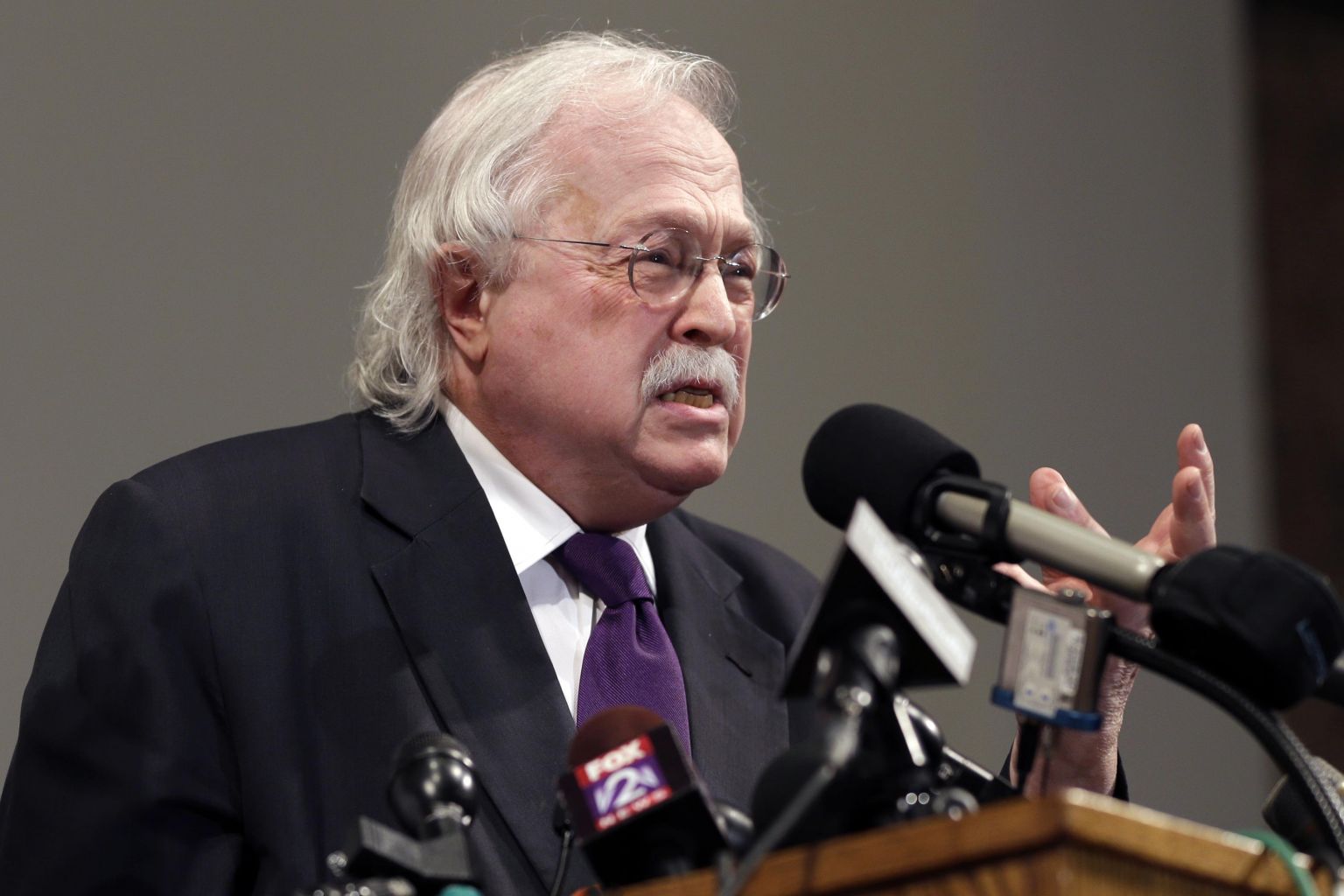 In a photo taken on Aug 18, 2014, pathologist Dr. Michael Baden speaks during a news conference to share preliminary results of a second autopsy done on Michael Brown.