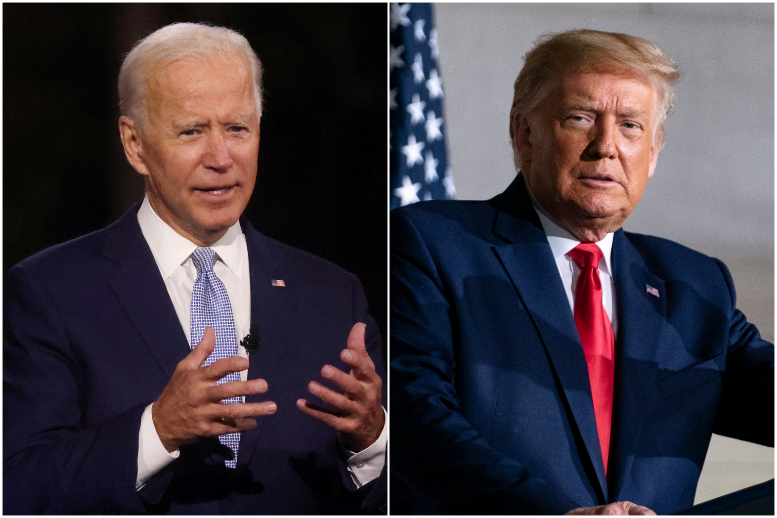Donald Trump and Joe Biden (left) will campaign in two election battlegrounds on Sept 21, 2020.