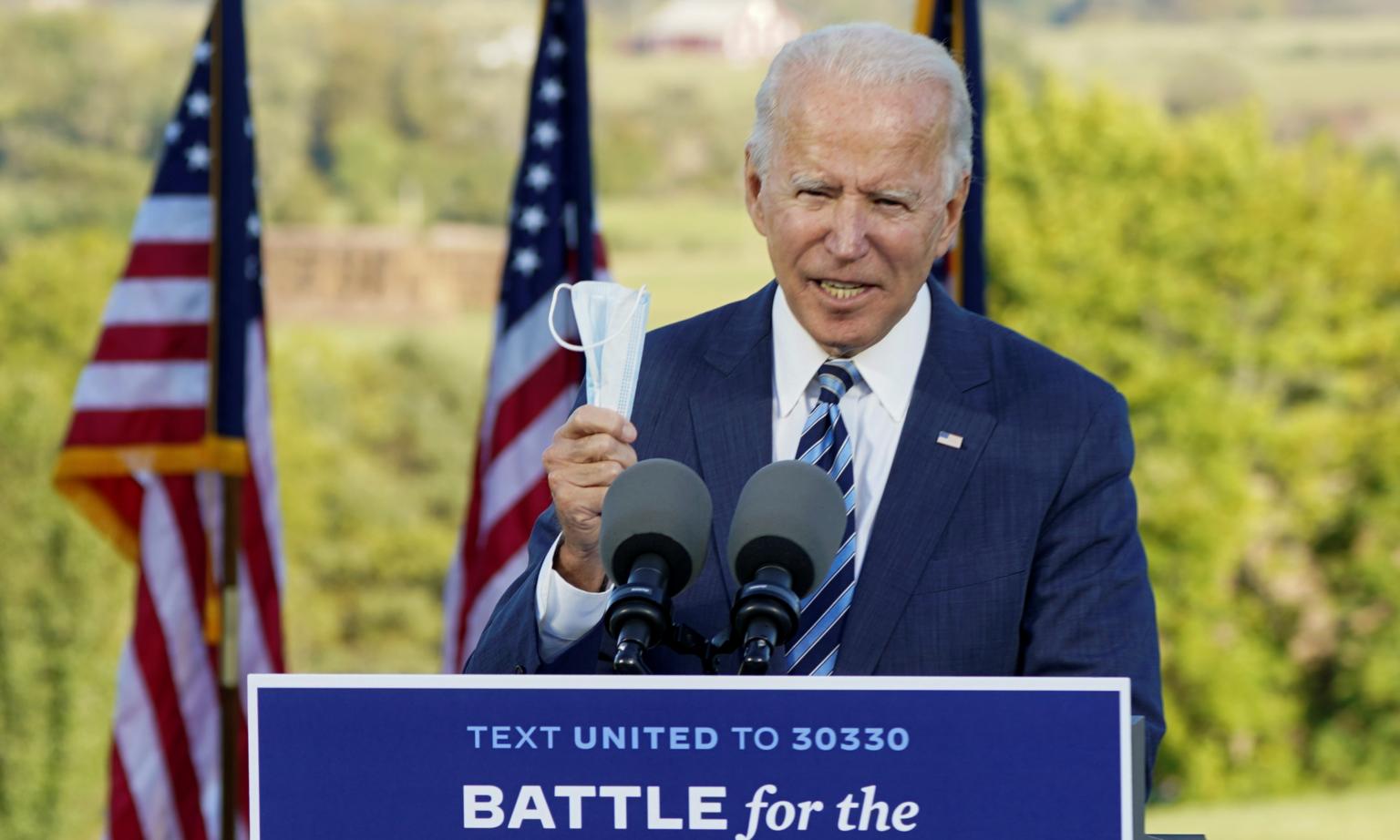 Democratic US presidential nominee Joe Biden speaks in Gettysburg, Pennsylvania, on Oct 6, 2020.