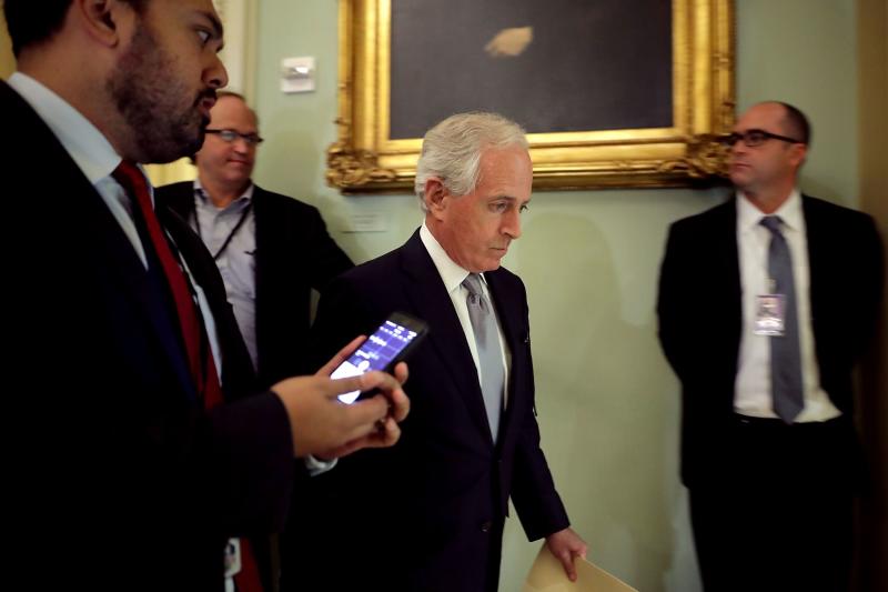 Sen. Bob Corker heads into a Senate Republican policy luncheon at the US Capitol on Aug 1, 2017.