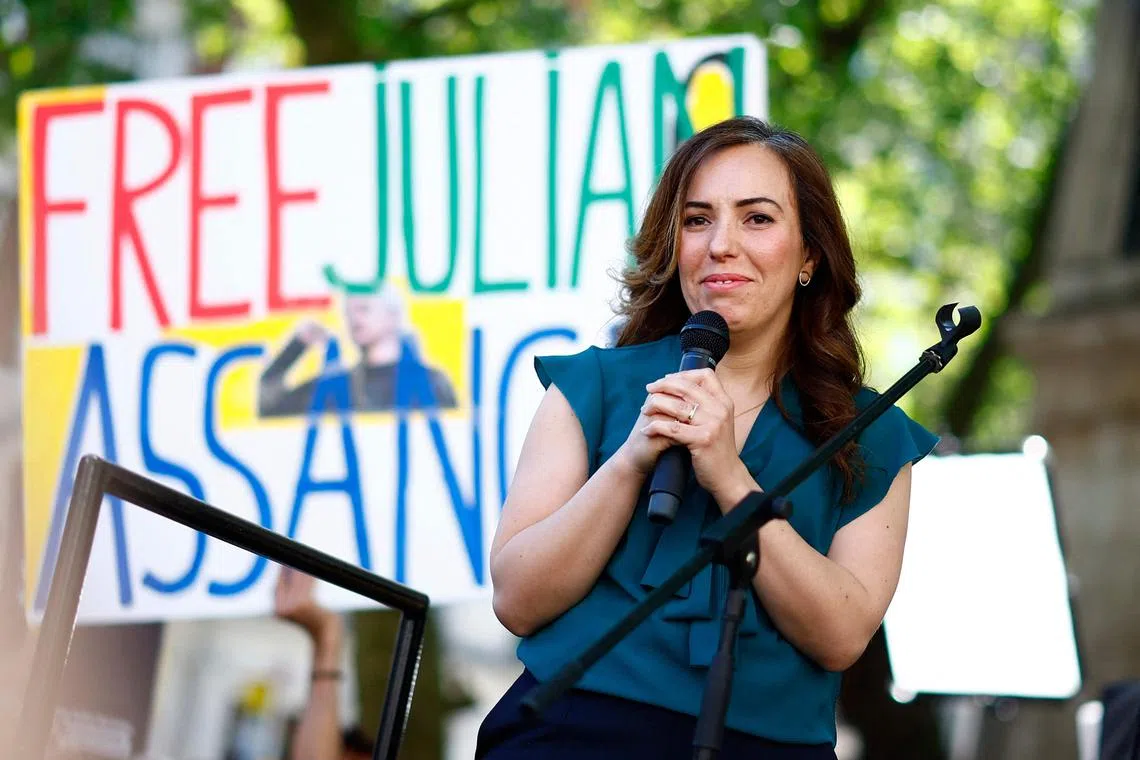 Stella Assange, the wife of WikiLeaks founder Julian Assange, addresses supporters outside The Royal Courts of Justice, Britain’s High Court, in central London, on May 20, 2024.