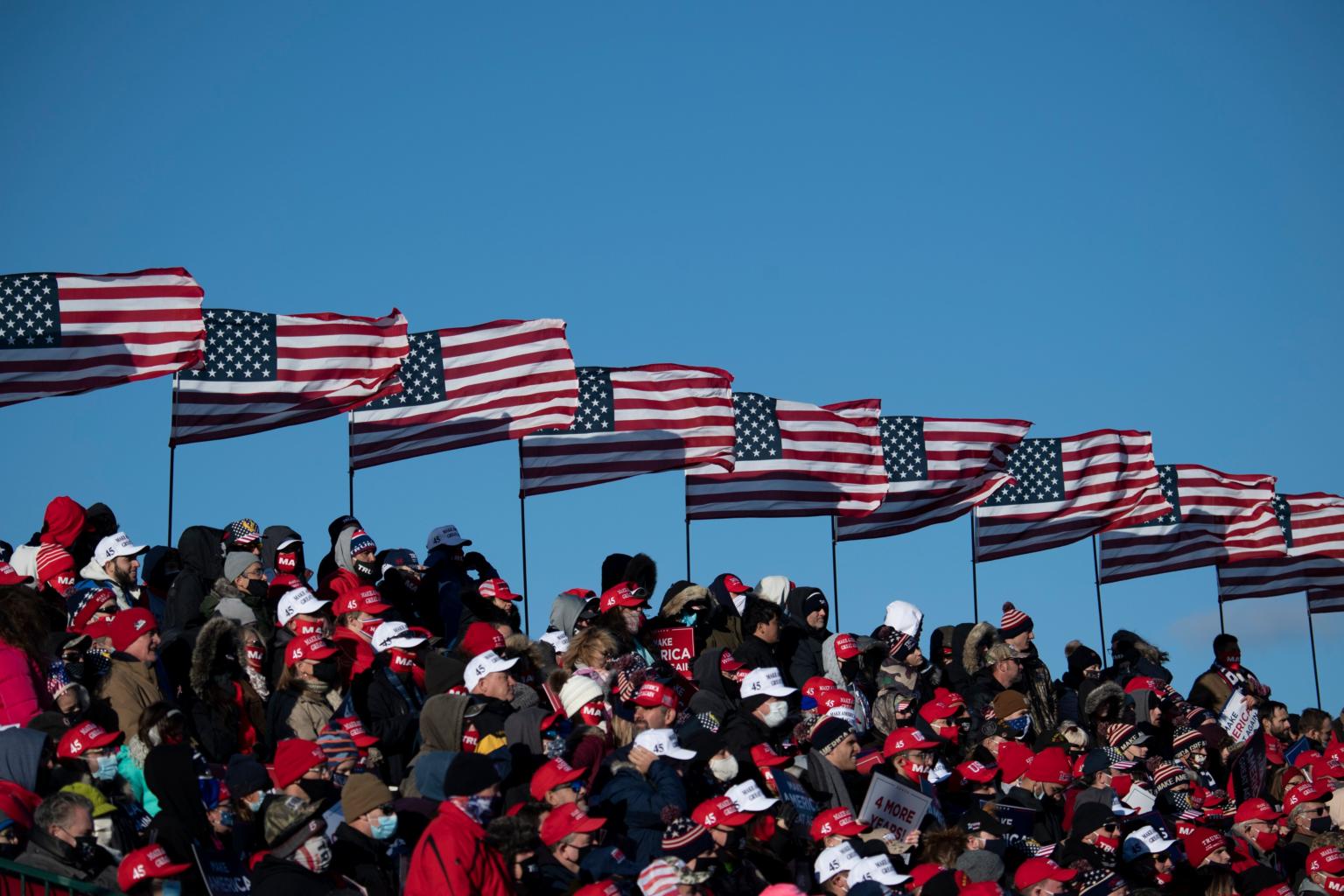 Many in the audience have not worn masks as the President vowed to secure an against-the-odds win.
