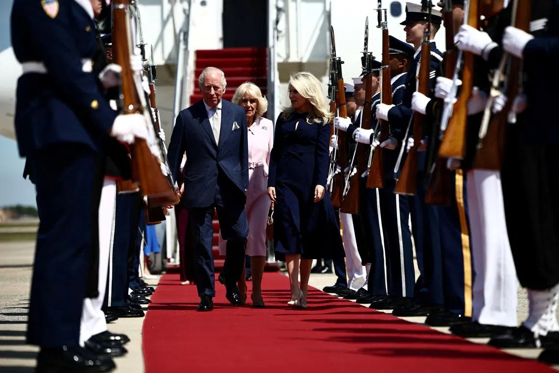 WASHINGTON - Britain’s King Charles and Queen Camilla arrived in the United States on April 27 for a four-day trip, welcomed by self-proclaimed royal fan Donald Trump even as the US president has differed with the British government over the Iran war.