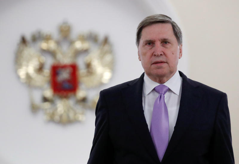 Russia's presidential aide Yuri Ushakov approaches the media after a meeting of President Vladimir Putin with US National Security Adviser John Bolton at the Kremlin in Moscow, Russia, on Oct 23, 2018.