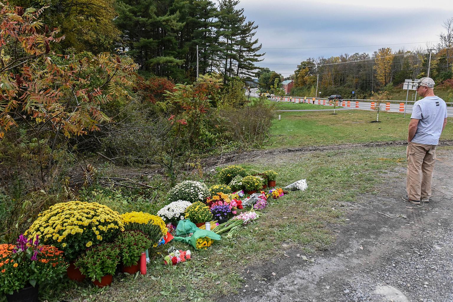 A mourner looks on at the site of the fatal limousine crash on Oct 8, 2018, in Schoharie, New York.