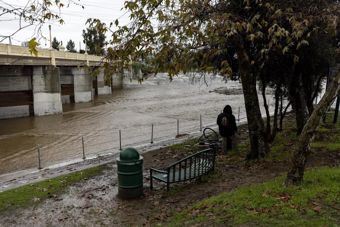 LOS ANGELES - A deadly atmospheric river storm lingered over southern California for a third day on Feb 6, soaking the region with steady rains that threatened to trigger more flooding and mudslides