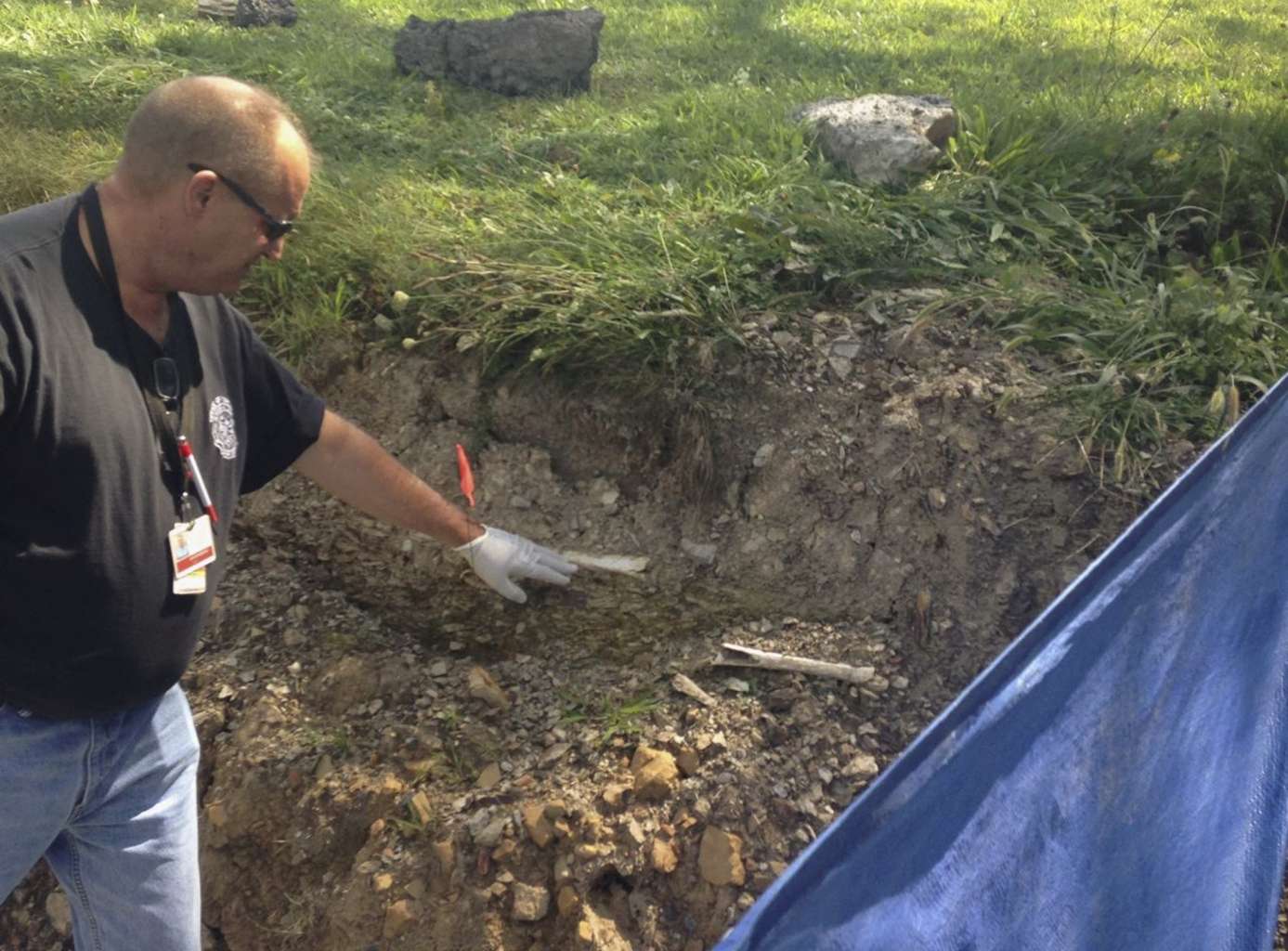 Schuylkill County Deputy Coroner Joe Pothering points to human bones in embankment along Route 61 in Schuylkill Haven, Pennsylvania earlier this month believed to be from victims of the worldwide Spanish flu pandemic in 1918. Scientists have reportedly taken a major step towards a creating a universal flu vaccine that could end such pandemics.