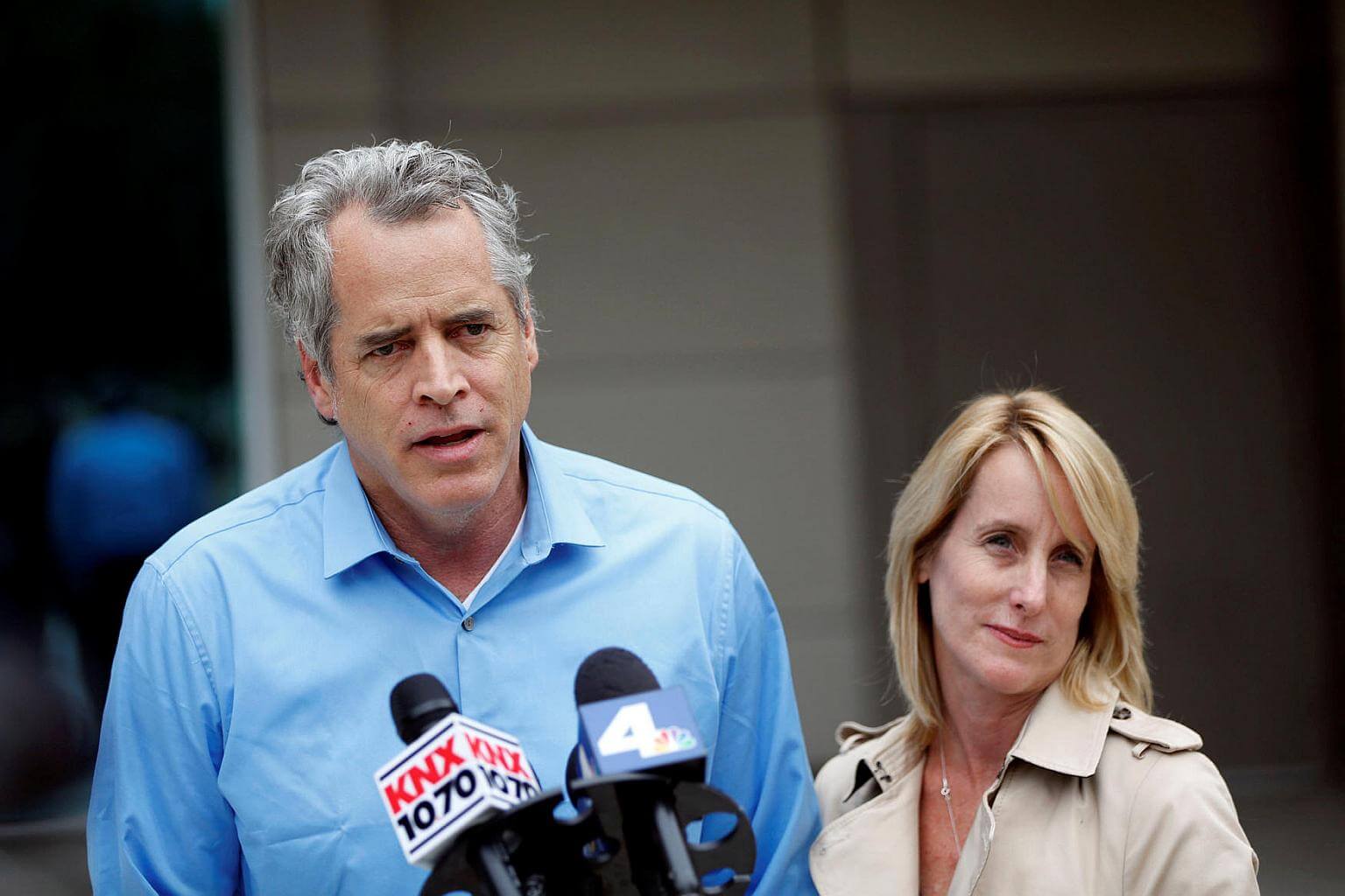 James Otis, the man who admits vandalizing Donald Trump's star on the Hollywood Walk of Fame, speaks to the media with his attorney Mieke ter Poorten about his arrest outside of the LAPD Metropolitan Detention Center in Los Angeles, California on Oct 27, 2016.