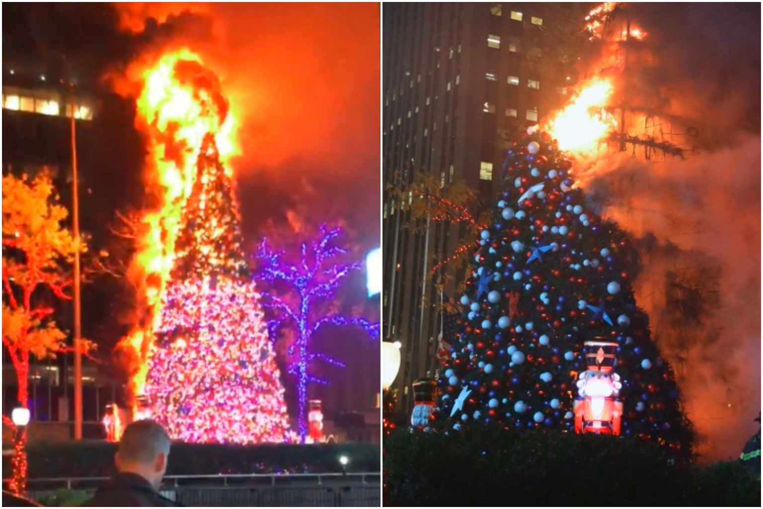 "This is the Fox Square in New York, outside of Fox headquarters," the host, Ms Shannon Bream, told viewers shortly after midnight. "It appears that our giant Christmas tree there, just a couple of minutes ago, was completely engulfed in flames."