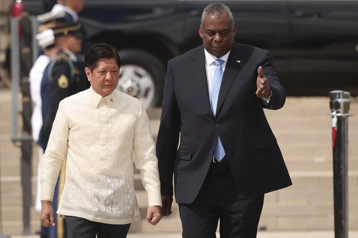 Philippine President Ferdinand Marcos Jr (left) with US Secretary of Defence Lloyd Austin as he arrived at the the Pentagon on May 3.