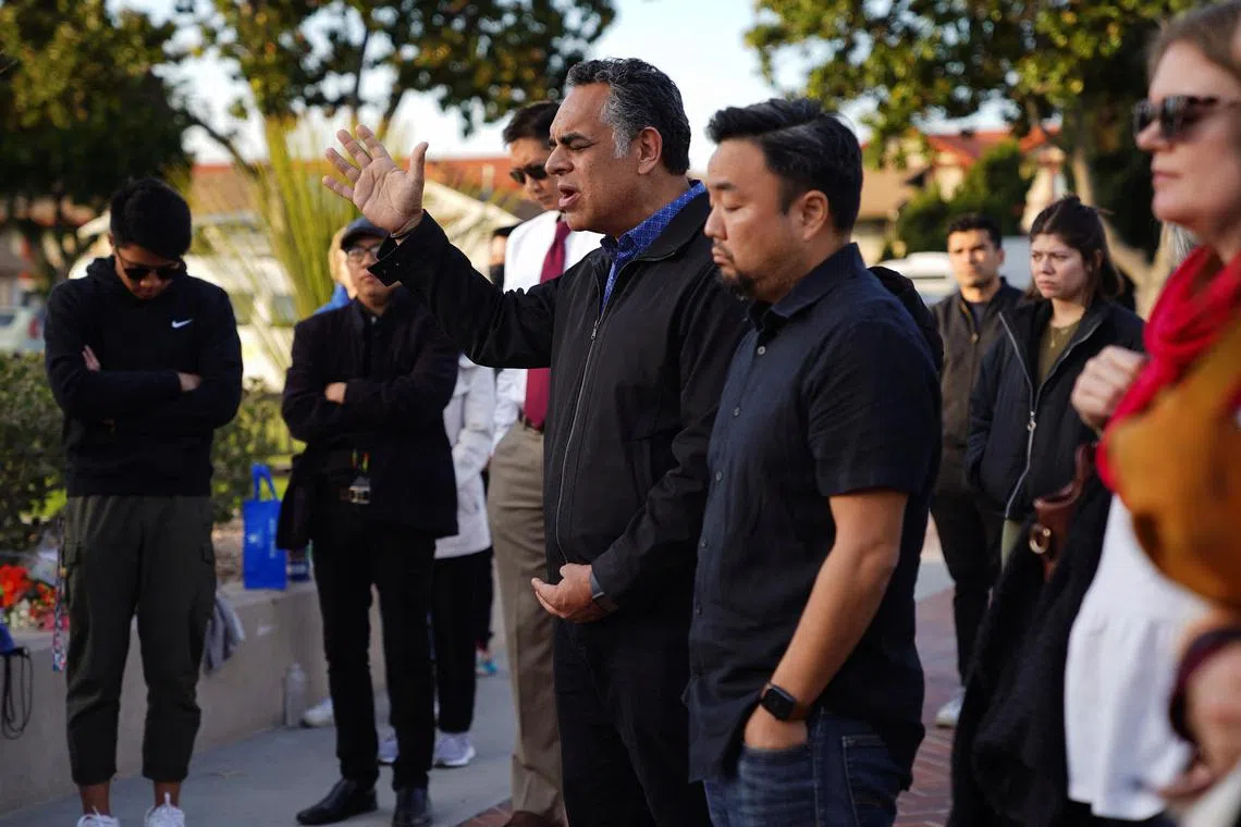 Members of the community in Monterey Park hold a prayer vigil near the scene of the shooting.
