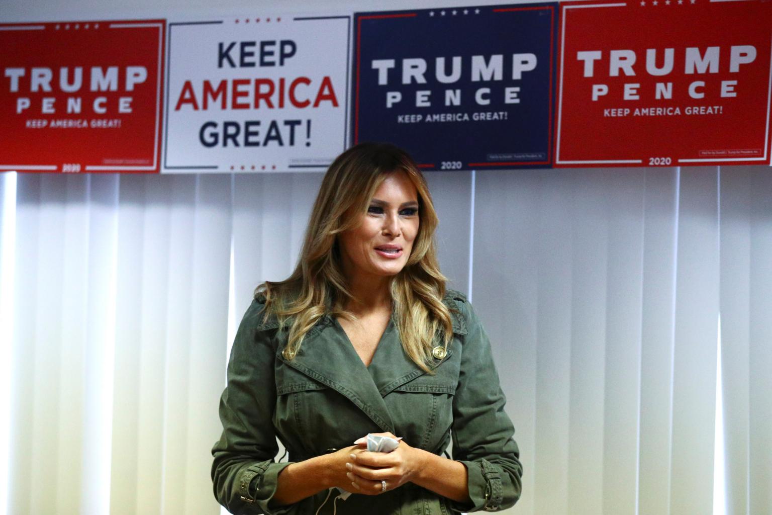 US first lady Melania Trump speaks at the Republican Committee of Lancaster County on Oct 27, 2020.