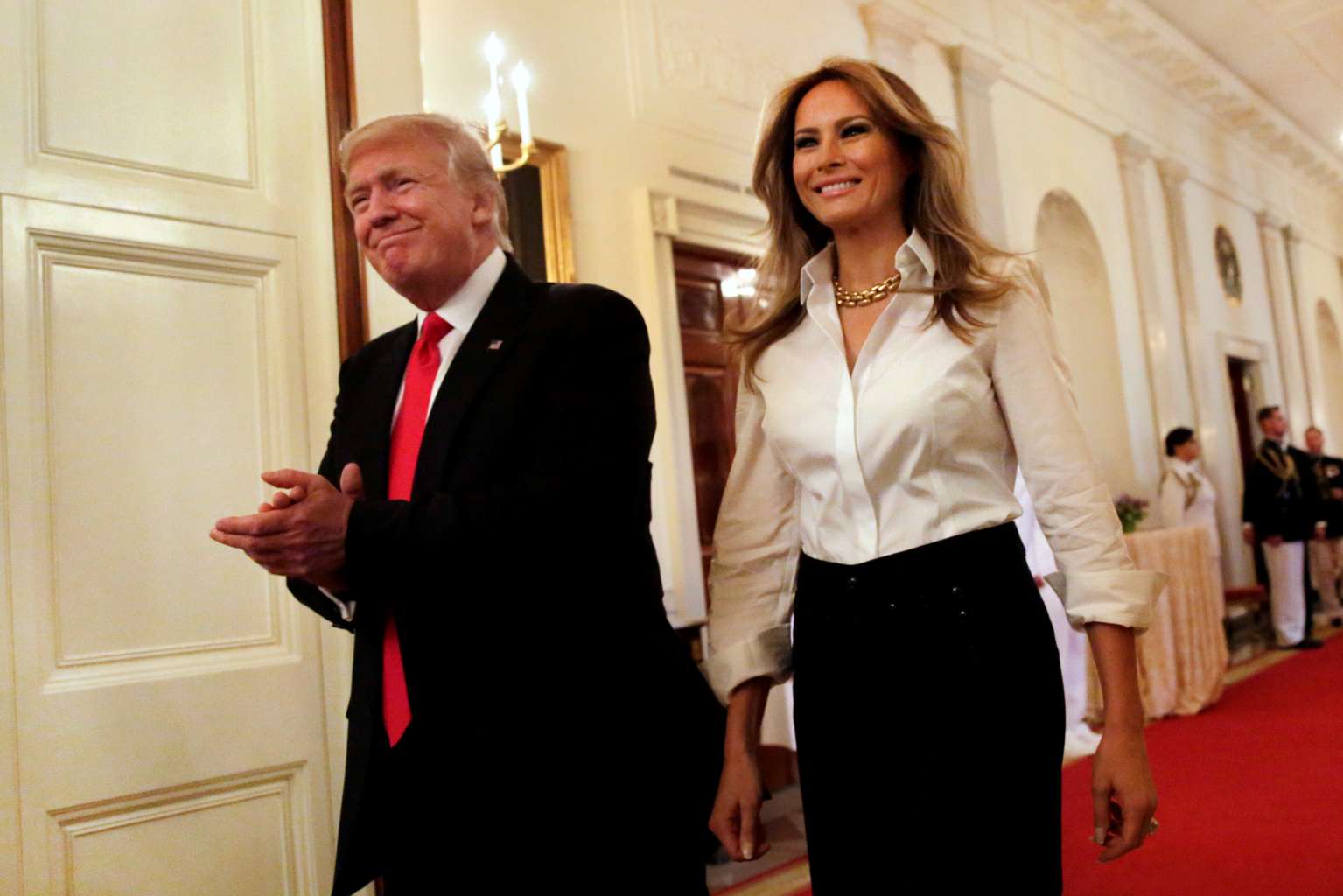 Donald and Melania Trump arrive for an event at the White House, May 12, 2017.