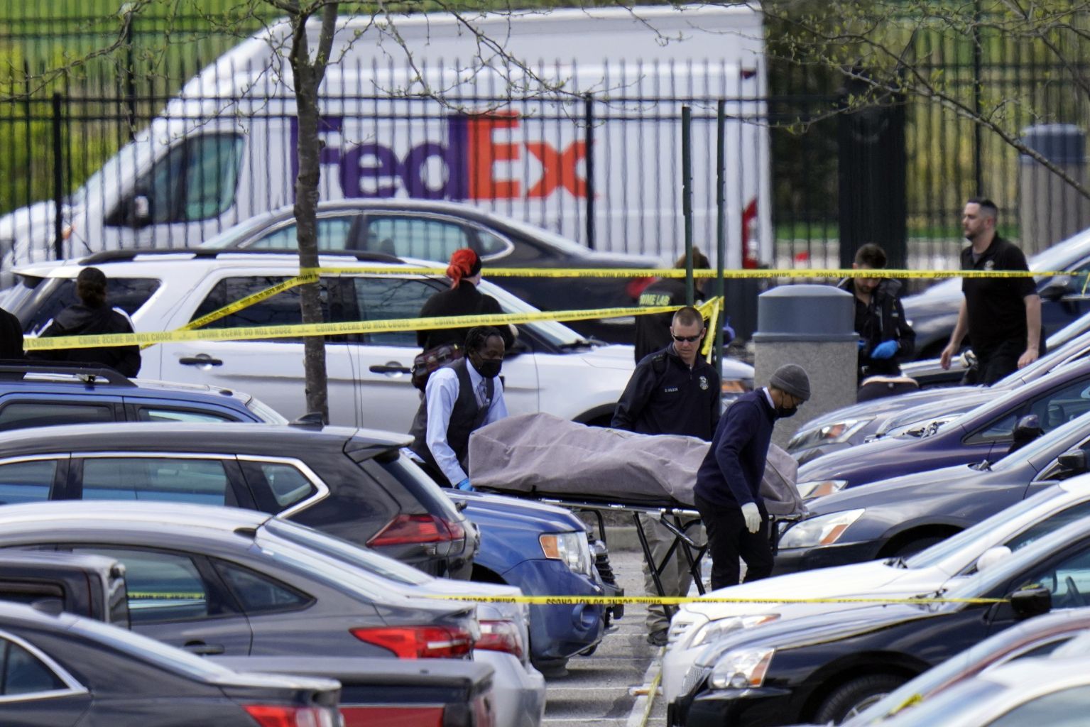 A body is transported from a FedEx facility in Indianapolis on April 16, 2021, where a mass shooting occurred the previous night.