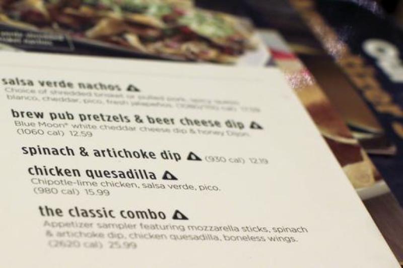 A menu from Applebee restaurant in an outlet in the Manhattan borough of New York City on Nov 30, 2015. A new regulation requires chains with 20 or more locations as well as grocery stores and convenience chains to post calorie counts for standard menu items.