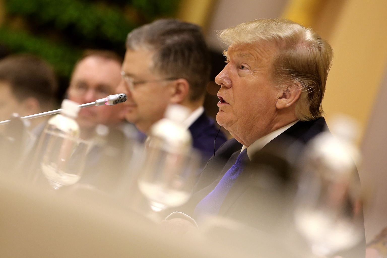 Trump (right) pictured at the Presidential Palace in Hanoi, Vietnam, Feb 27, 2019,