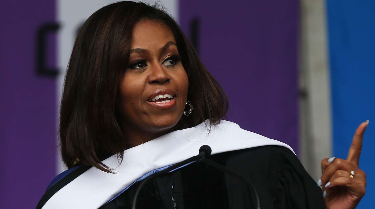 While she did not mention Trump, Michelle Obama did reference former secretary of state Colin Powell, a CCNY graduate and son of Jamaican immigrants who served Republican president George W. Bush, calling him a role model for young people.