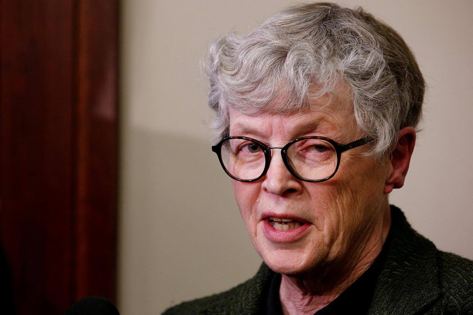 Michigan State University President Lou Anna K. Simon speaks after being confronted by victims during a break at the sentencing hearing for Lawrence Nassar in Lansing, Michigan, US, on Jan 17, 2018.