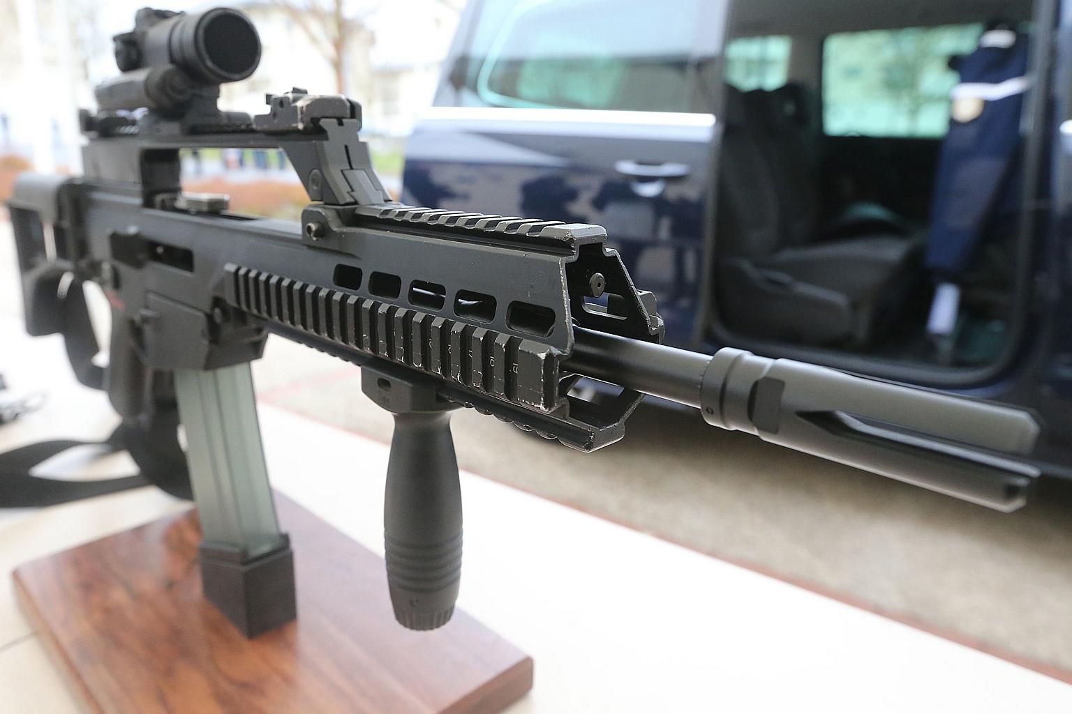 An assault rifle HK-G36 at a police headquarters in Reims, France.
