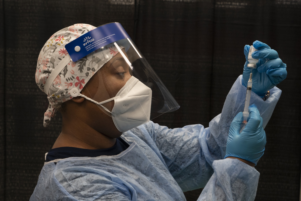 <p>FILE — A health care worker prepares a COVID-19 vaccine in West Orange, N.J. on April 6, 2021. Moderna and the National Institutes of Health are in a bitter dispute over who deserves credit for inventing the central component of the company’s powerful coronavirus vaccine, a conflict that has broad implications for the vaccine’s long-term distribution and billions of dollars in future profits. (James Estrin/The New York Times)</p>