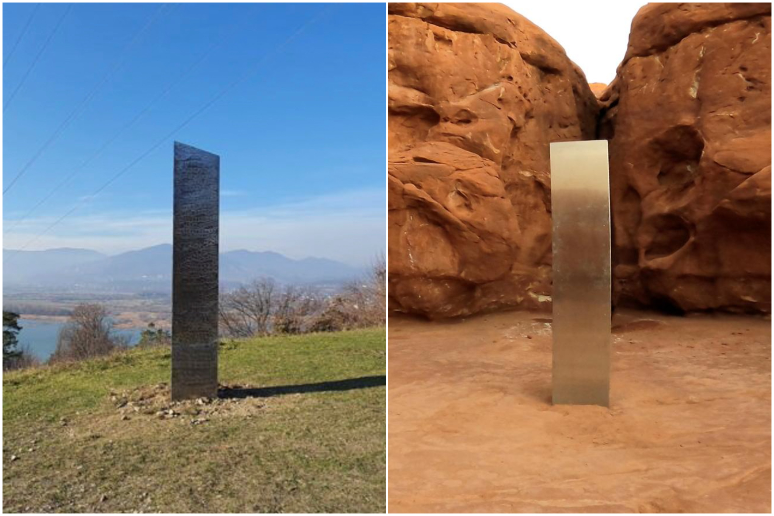 A metal monolith in Romania on Nov 27, 2020, and in Utah on Nov 25.