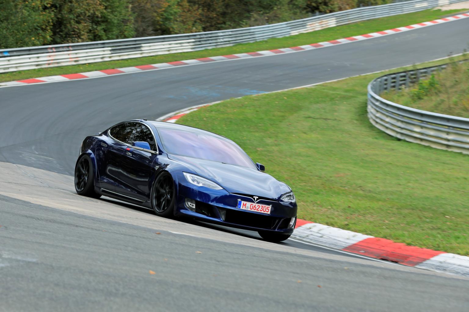 In this photo taken on Oct 15, 2019, a Tesla Model S is steered at a race track in Eifel, Germany. The model's retractable door handles are blamed for the accident.
