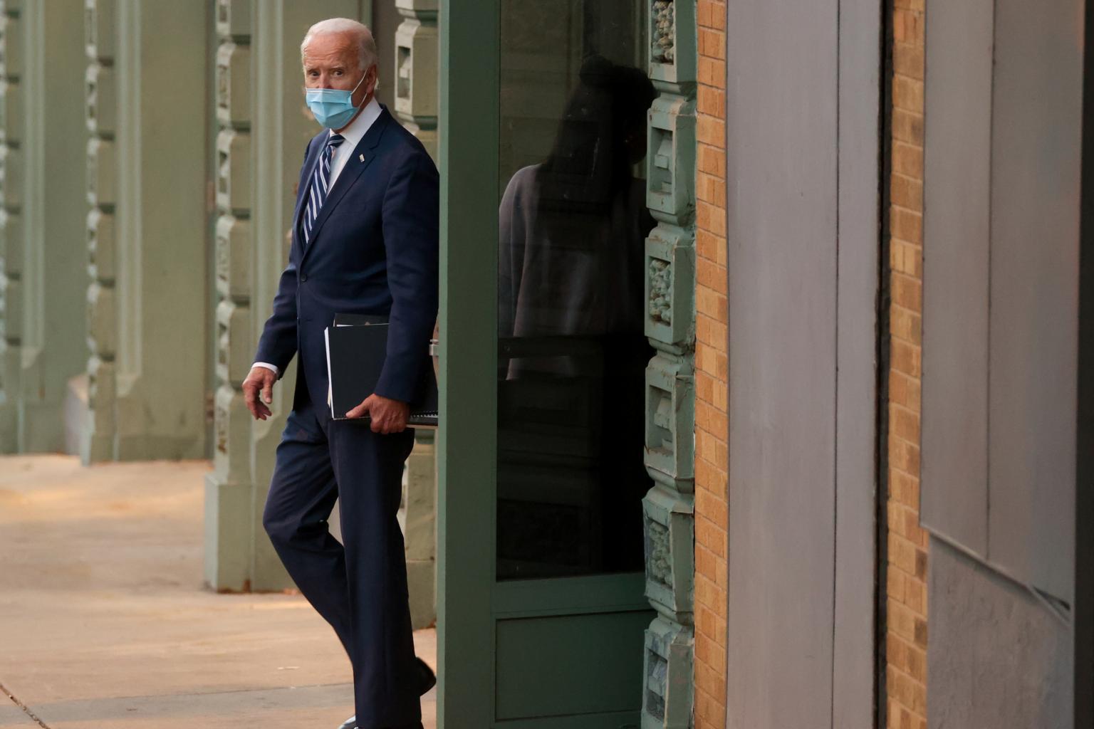 President-elect Joe Biden departs after spending the day at the theatre serving as his transition headquarters in Wilmington, Delaware, on Nov 10, 2020.