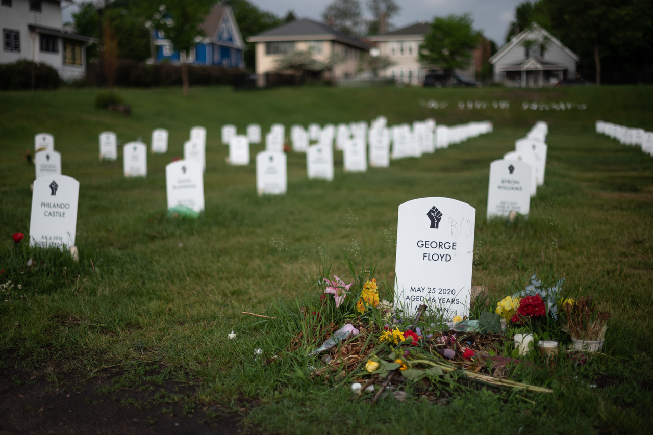A makeshift memorial for victims of police brutality near George Floyd Square in Minneapolis, May 25, 2021. Police