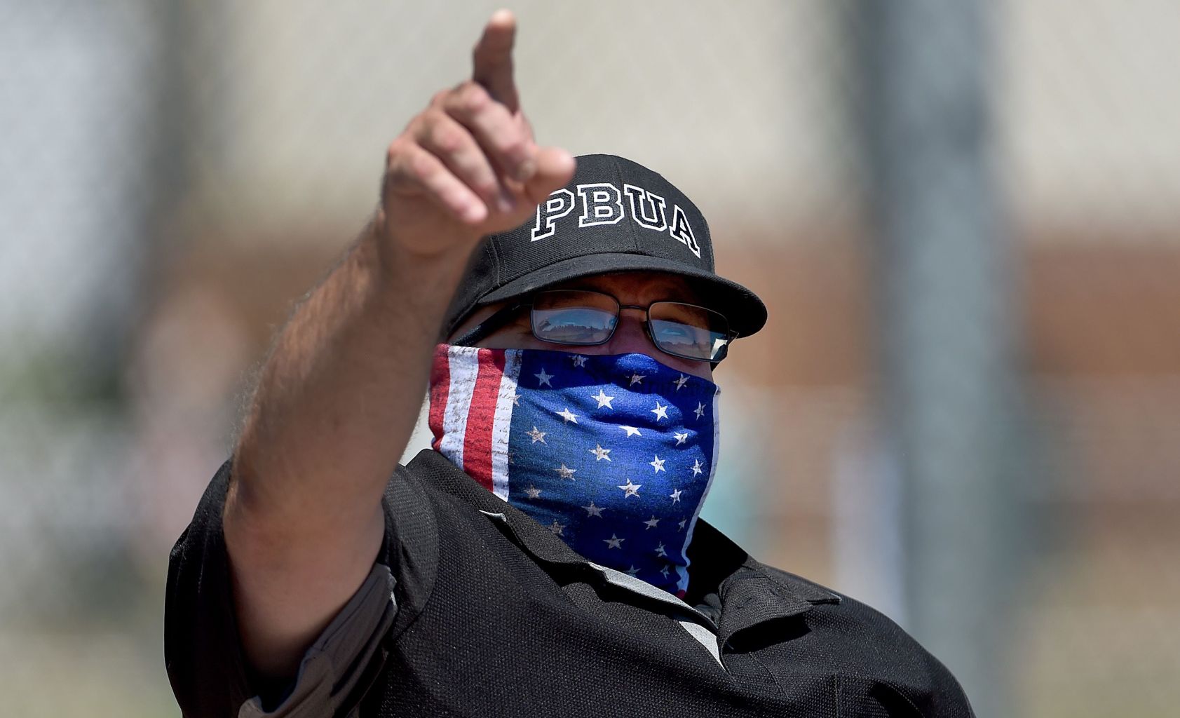 A baseball match umpire wears a mask in Aurora, Oregon, July 14, 2020.