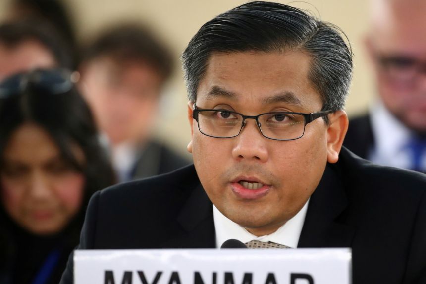 Ambassador Tun, chosen by the now jailed Ms Suu Kyi, has remained in office since the coup, asking that the UN let him keep his post.