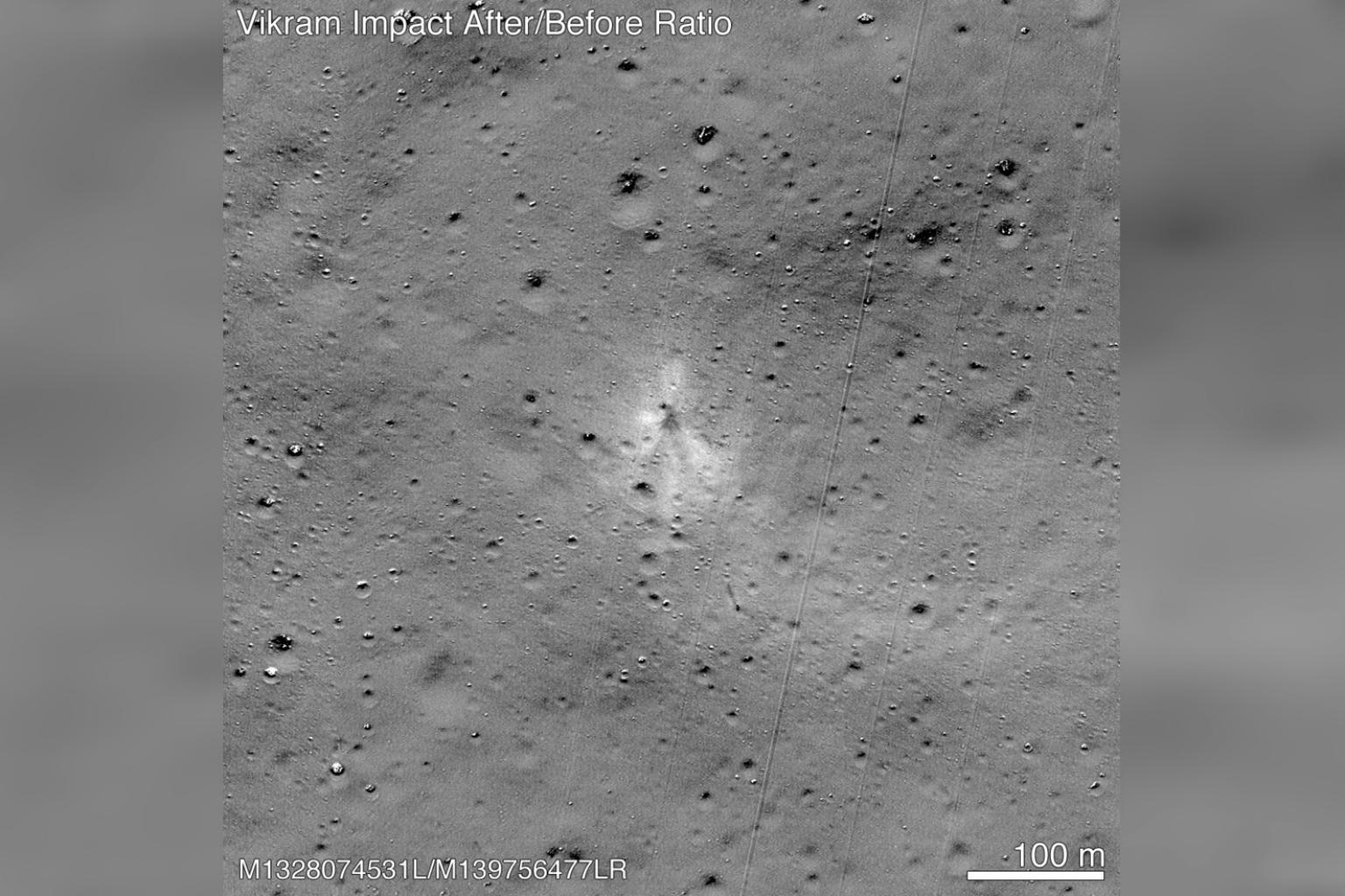 Nasa released an image taken on Spet 7 by its Lunar Reconnaissance Orbiter that showed the site of the Vikram lunar lander's impact.