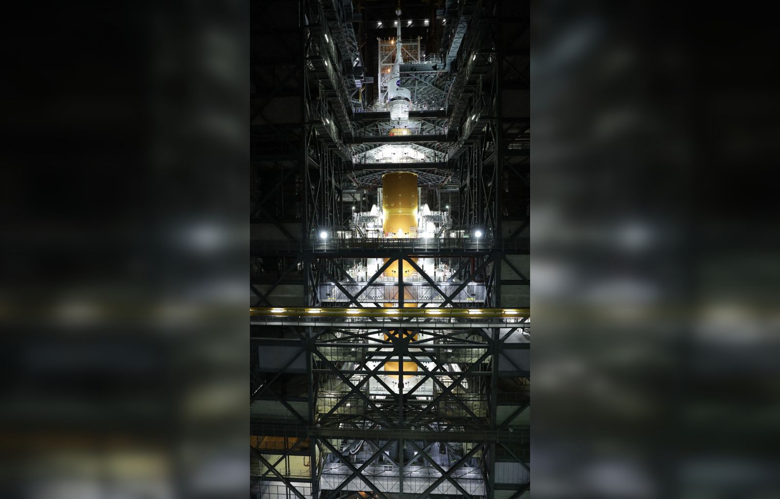 A photo released by Nasa on Oct 22, 2021, shows the Orion spacecraft placed atop the Space Launch System rocket.