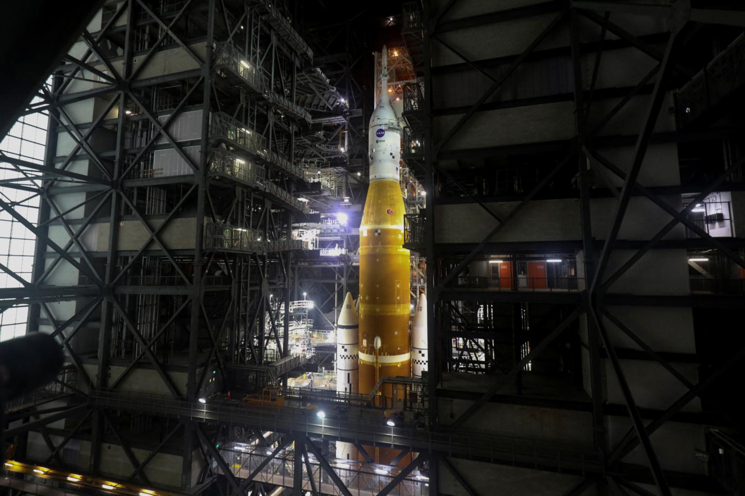 The process of moving the 5.75-million-ton, 32-storey-tall SLS-Orion spacecraft out of its Vehicle Assembly Building at Nasa's Kennedy Space Centre in Cape Canaveral was scheduled to begin at 5pm EDT (5am Singapore time on Friday), weather permitting.