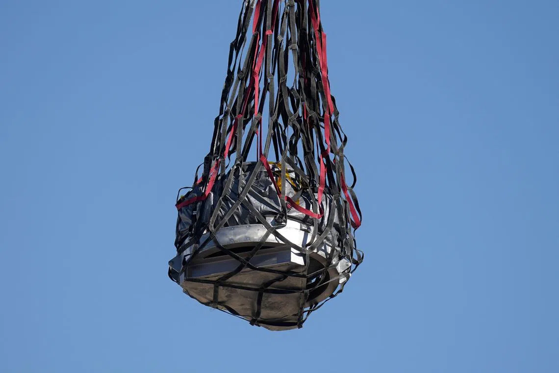 LOS ANGELES - A Nasa space capsule carrying the largest soil sample ever scooped up from the surface of an asteroid streaked through Earth’s atmosphere on Sunday and parachuted into the Utah desert, delivering the celestial specimen to scientists.