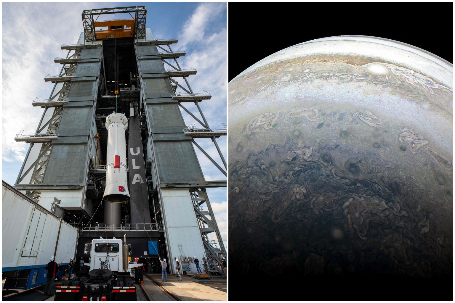NASA’s Lucy mission (left) at Cape Canaveral Space Force Station on Sept 16, 2021. It will embark on a 12-year journey to eight different asteroids.