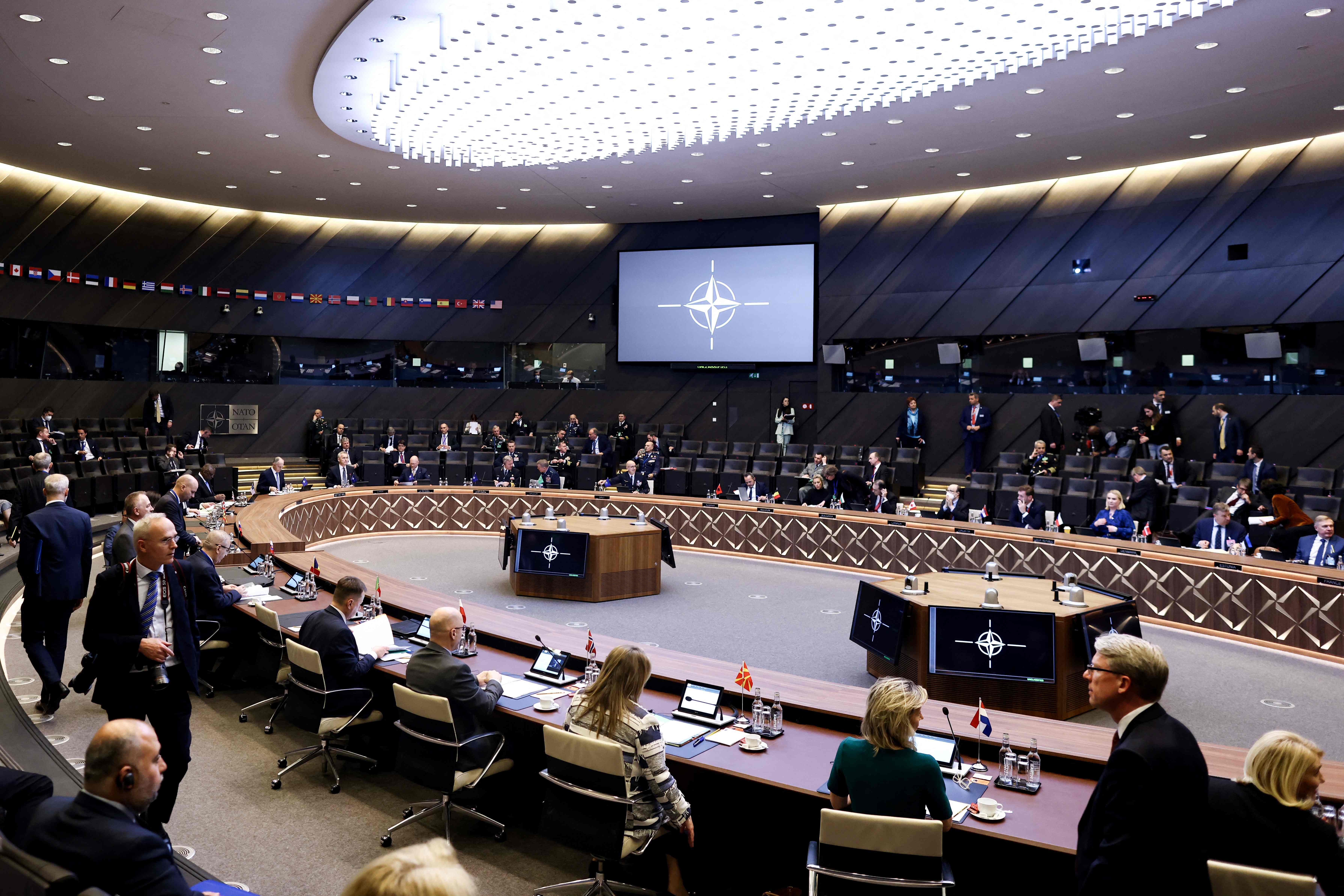 Defence ministers are pictured at Nato headquarters in Brussels, on March 16, 2022.