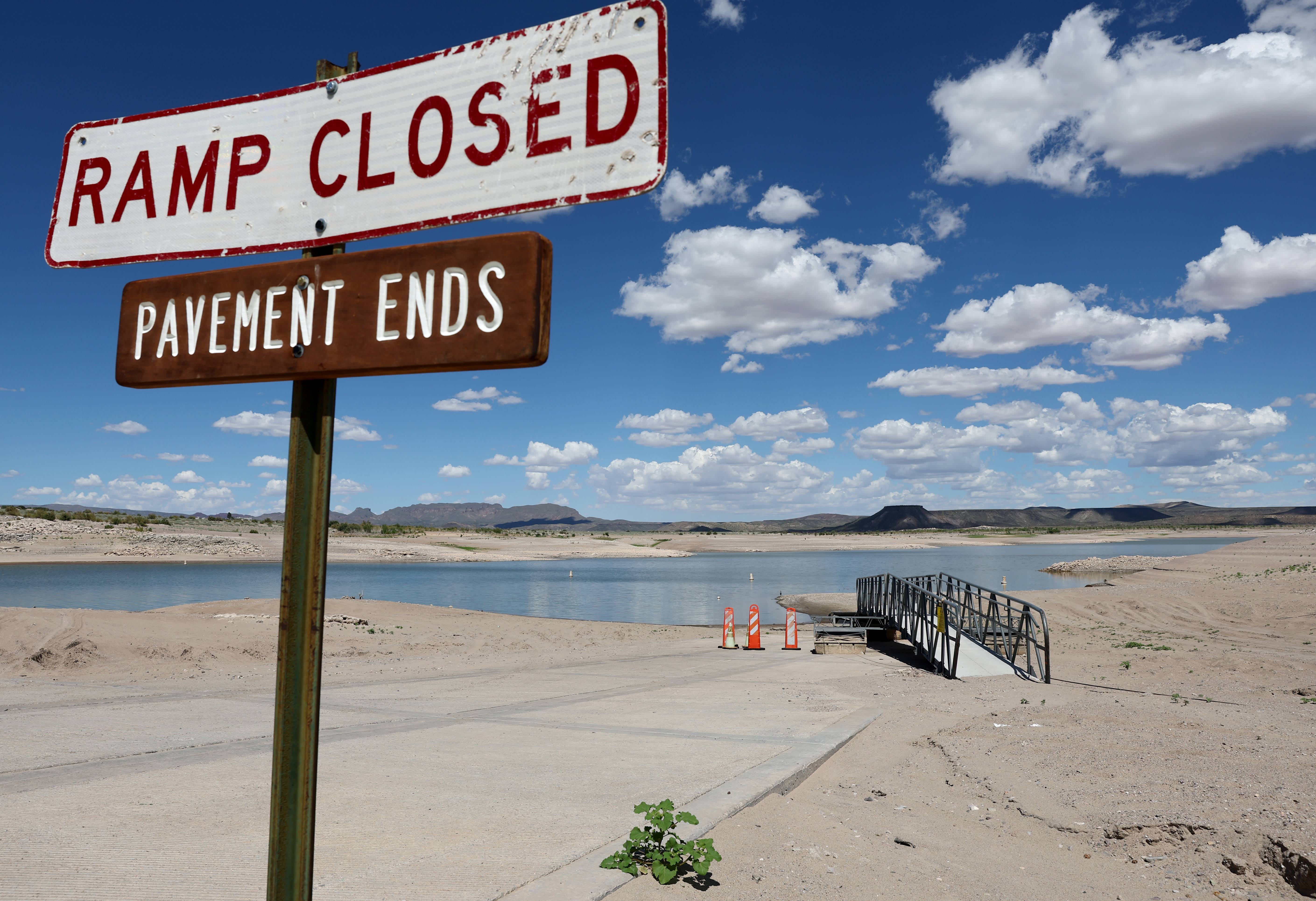 A closed boat ramp is seen at the drought-stricken Elephant Butte Reservoir in New Mexico, on Aug 16, 2022.