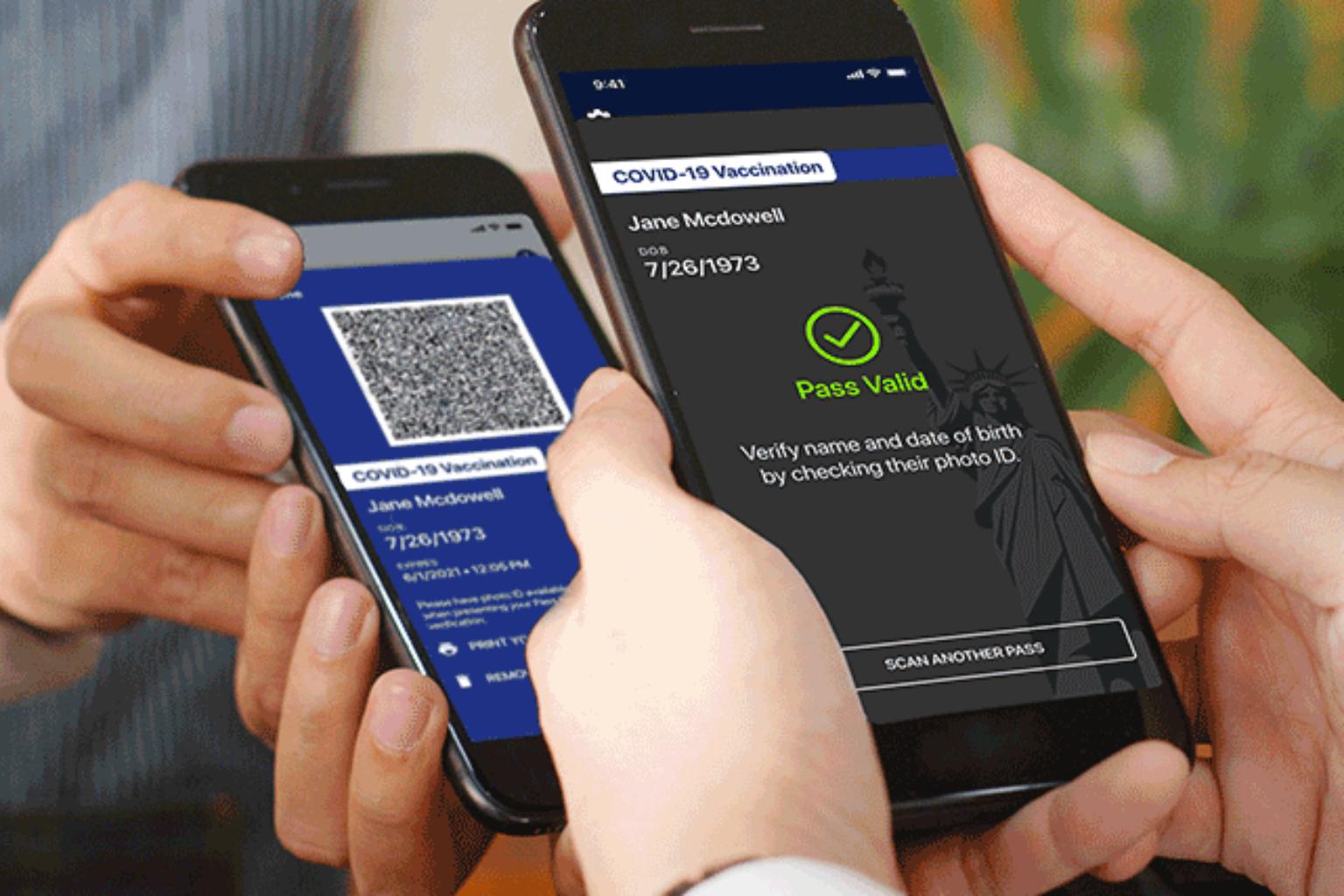 The free online platform, called Excelsior Pass, was developed with IBM and works like a mobile airline boarding pass.