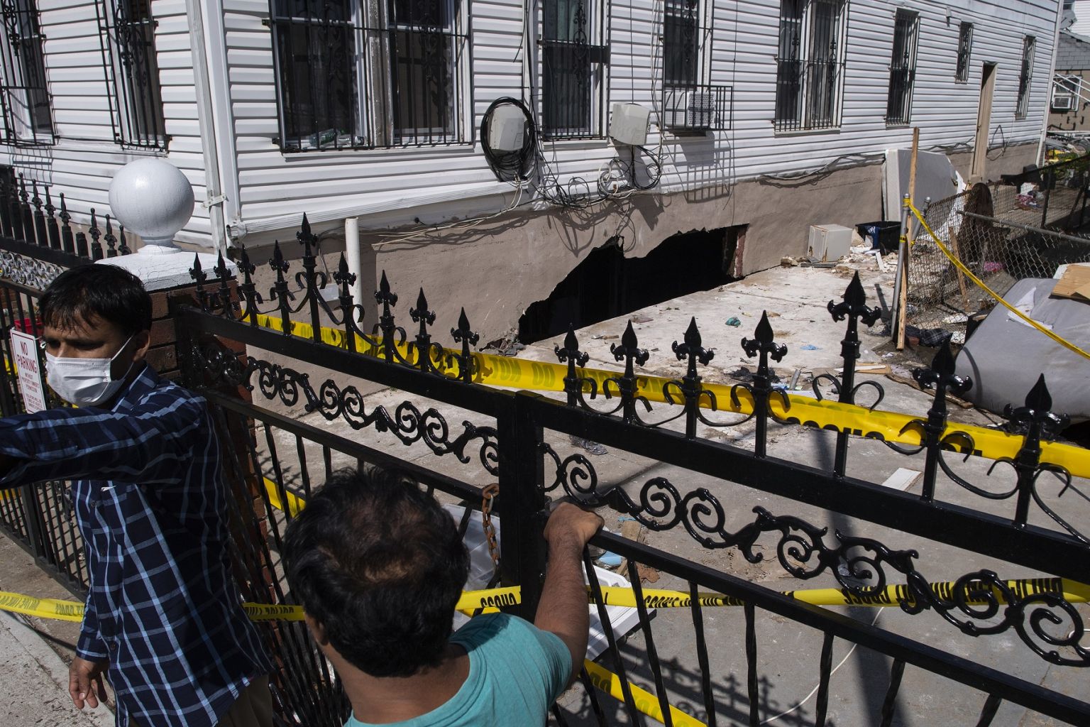 Police tape blocks off the area around a basement in which multiple people died after it flooded, in the Queens area of New York.