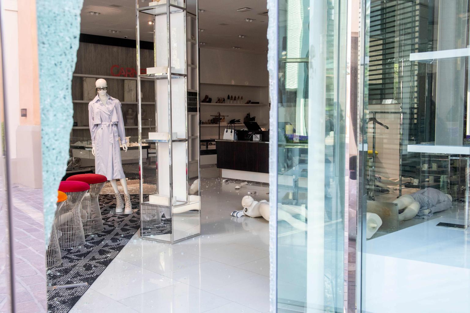 A trashed Michael Kors store at the Grove Mall in Los Angeles, on May 31, 2020.