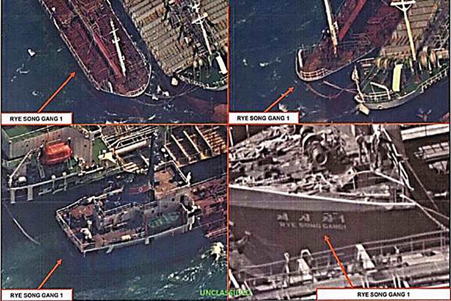 Satellite images provided by the US Treasury Department showing what the Treasury Department says is the transfer of refined petroleum between an unidentified ship and the North Korean ship Rye Song Gang 1, in October 2017.