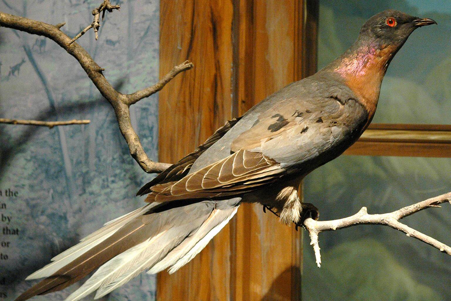 A display of an extinct male passenger pigeon in the Cleveland Museum of Natural History in the United States.