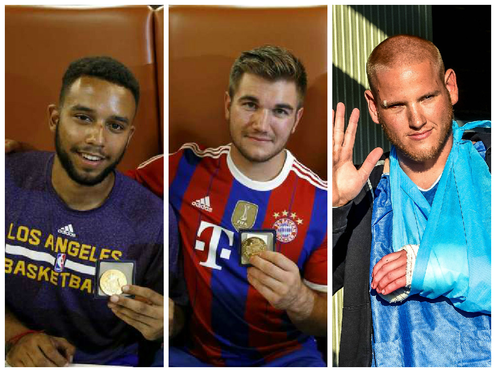 (From left) Anthony Sadler, Aleksander Skarlatos and Spencer Stone tackled, disarmed and subdued the assailant.