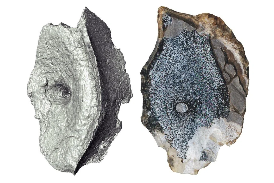 A computed tomography image showing the internal bone structure of vertebrae from the earliest-known ichthyosaur.