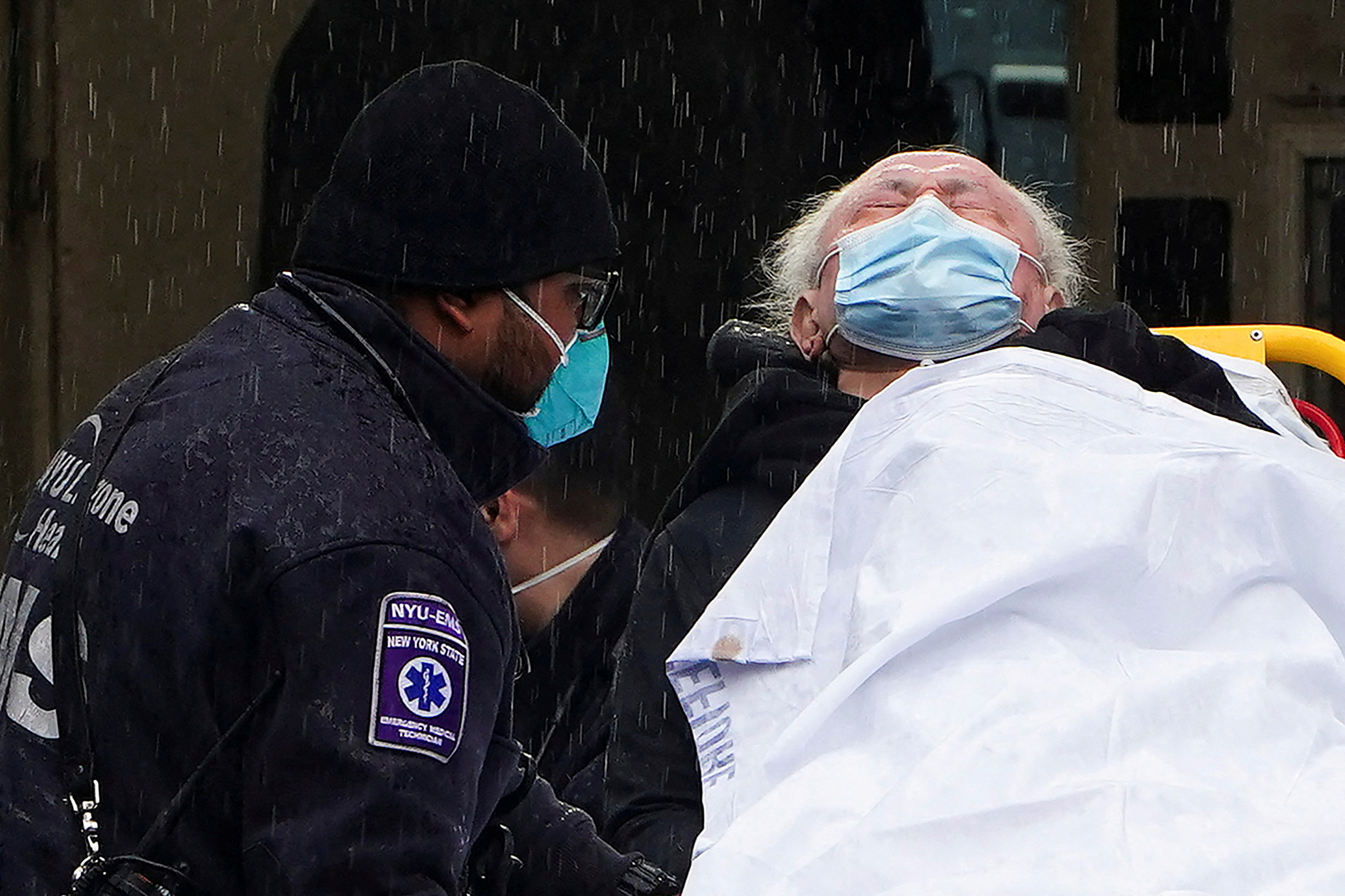 A patient is delivered to a hospital in the Manhattan borough of New York City, on Jan 5, 2022.