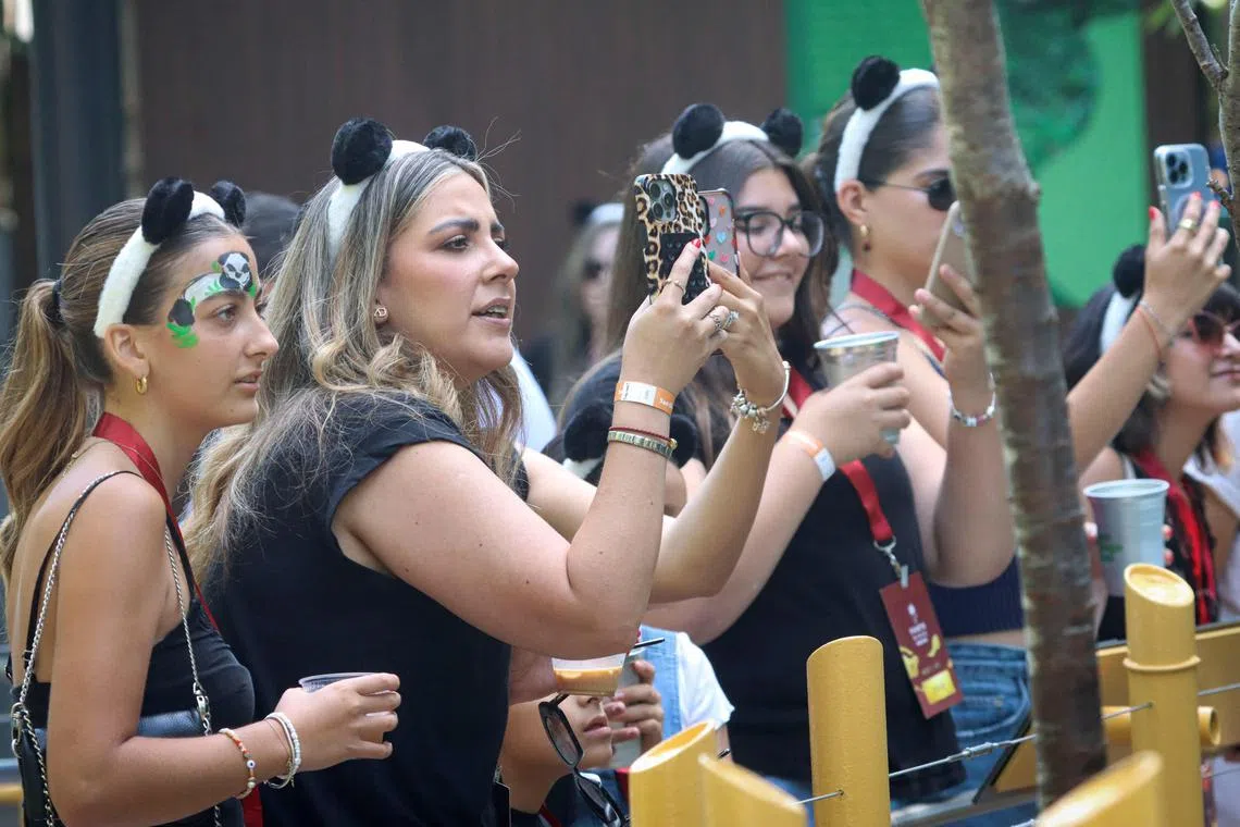 At noon on Aug 8, visitors in panda T-shirts waited in the shade of the dense bamboo forest at Panda Ridge in anticipation of their first encounter with Yun Chuan and Xin Bao.
