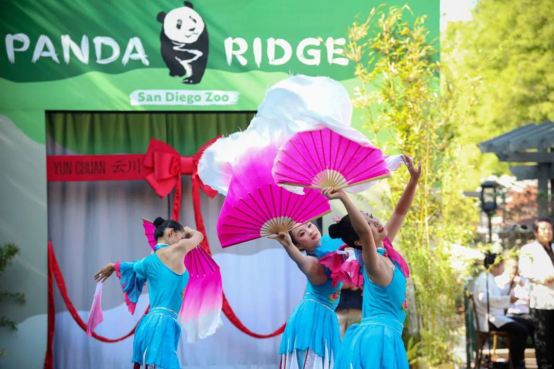 Dancers performing in front of the Panda Ridge entrance on the Aug 8 opening day at San Diego Zoo.