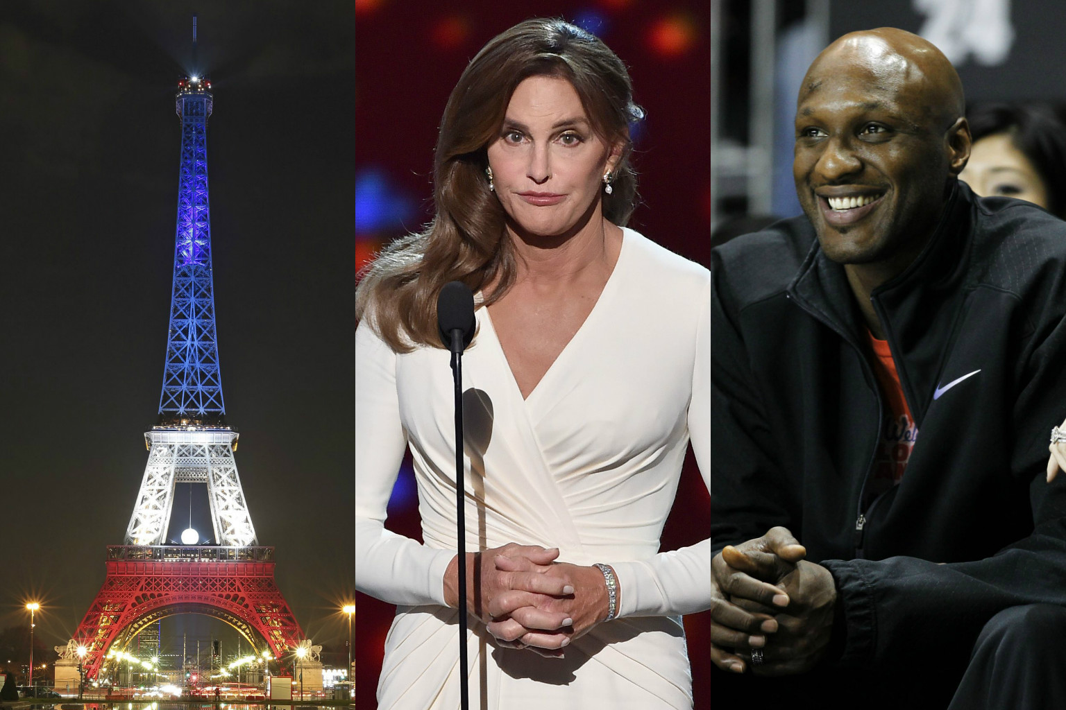 Terror attacks in Paris topped the global ranking of Google searches in 2015. Transgender icon Caitlyn Jenner (centre) and the downfall of ex-NBA star Lamar Odom (right) were also popular searches.