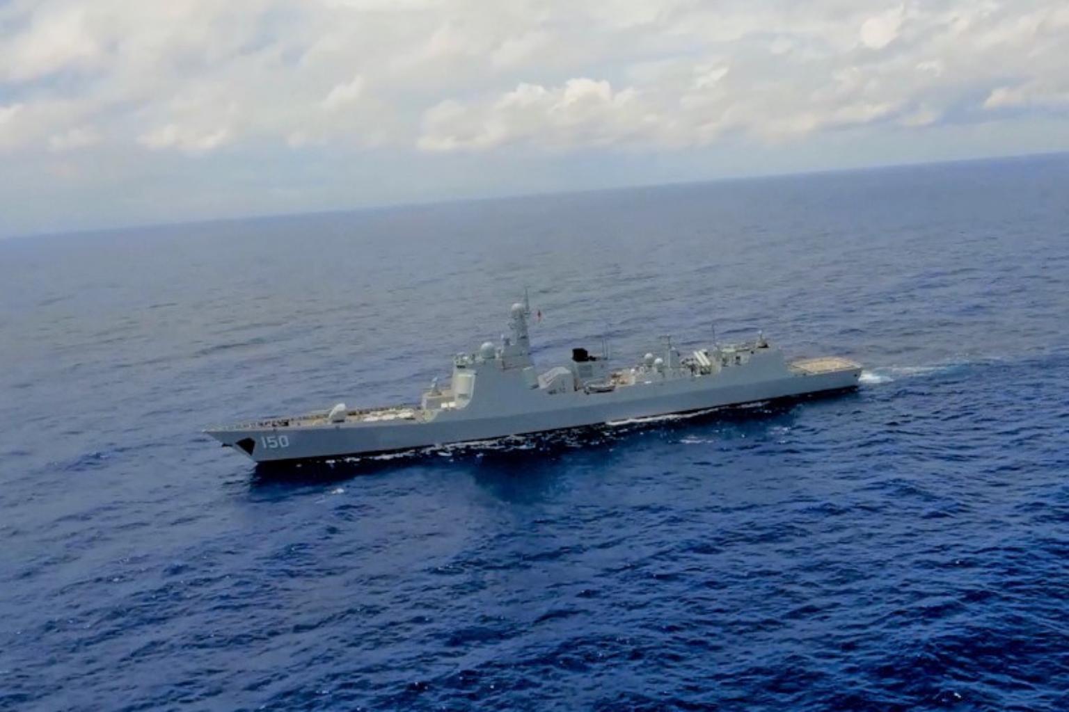 A Chinese Navy Force destroyer takes part in military exercises in the waters around Taiwan on Aug 8, 2022.