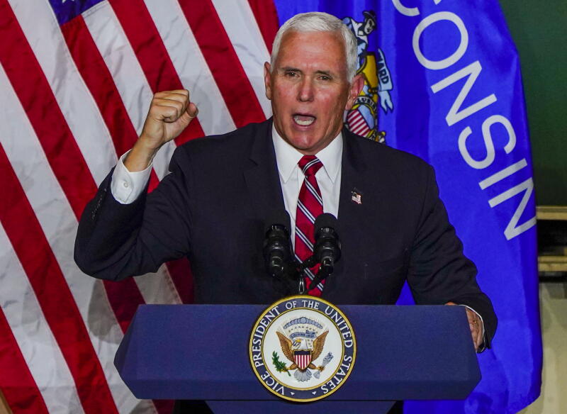 US Vice-President Mike Pence speaking at Tankcraft Corporation in Darien, Wisconsin, on Aug 19, 2020.